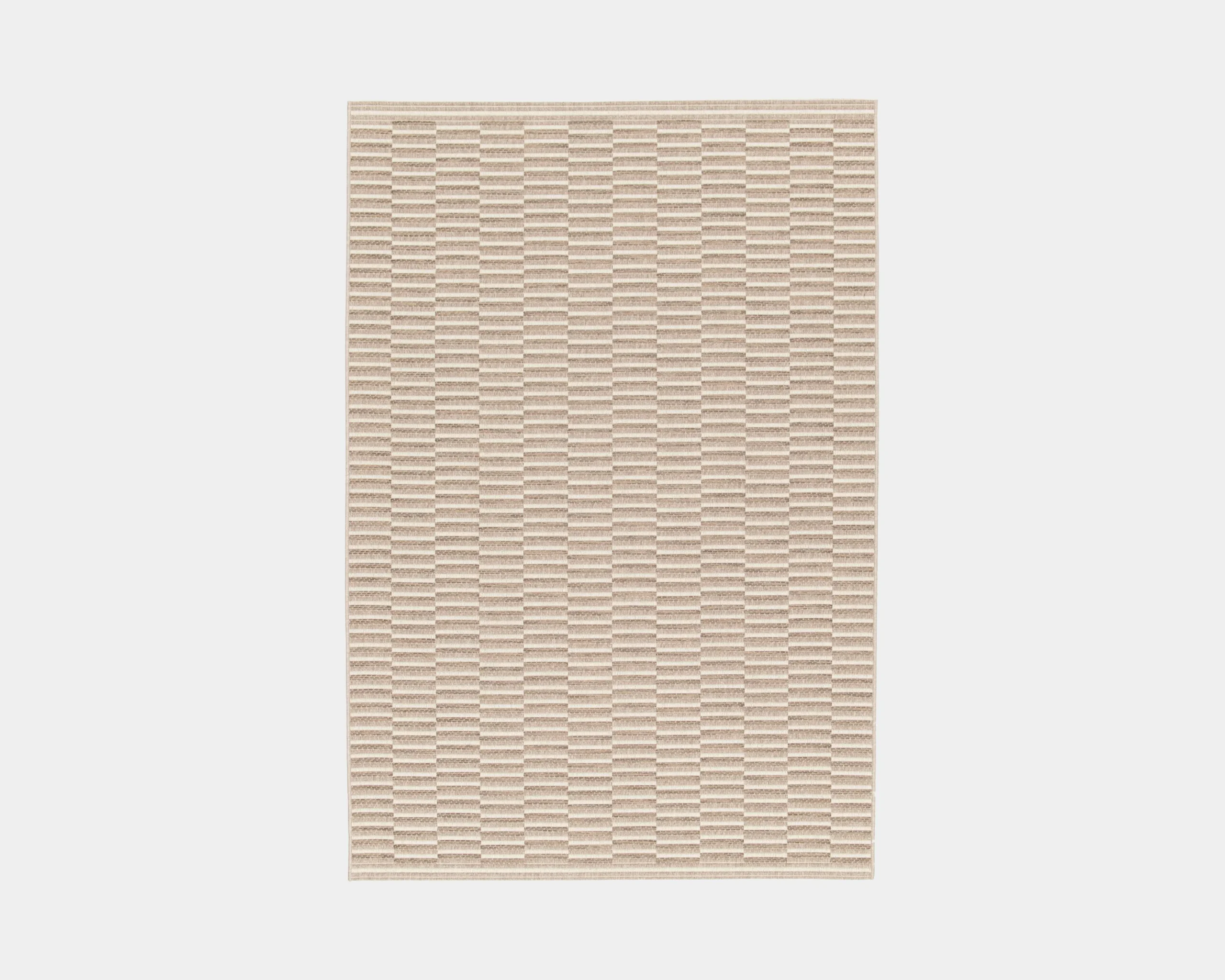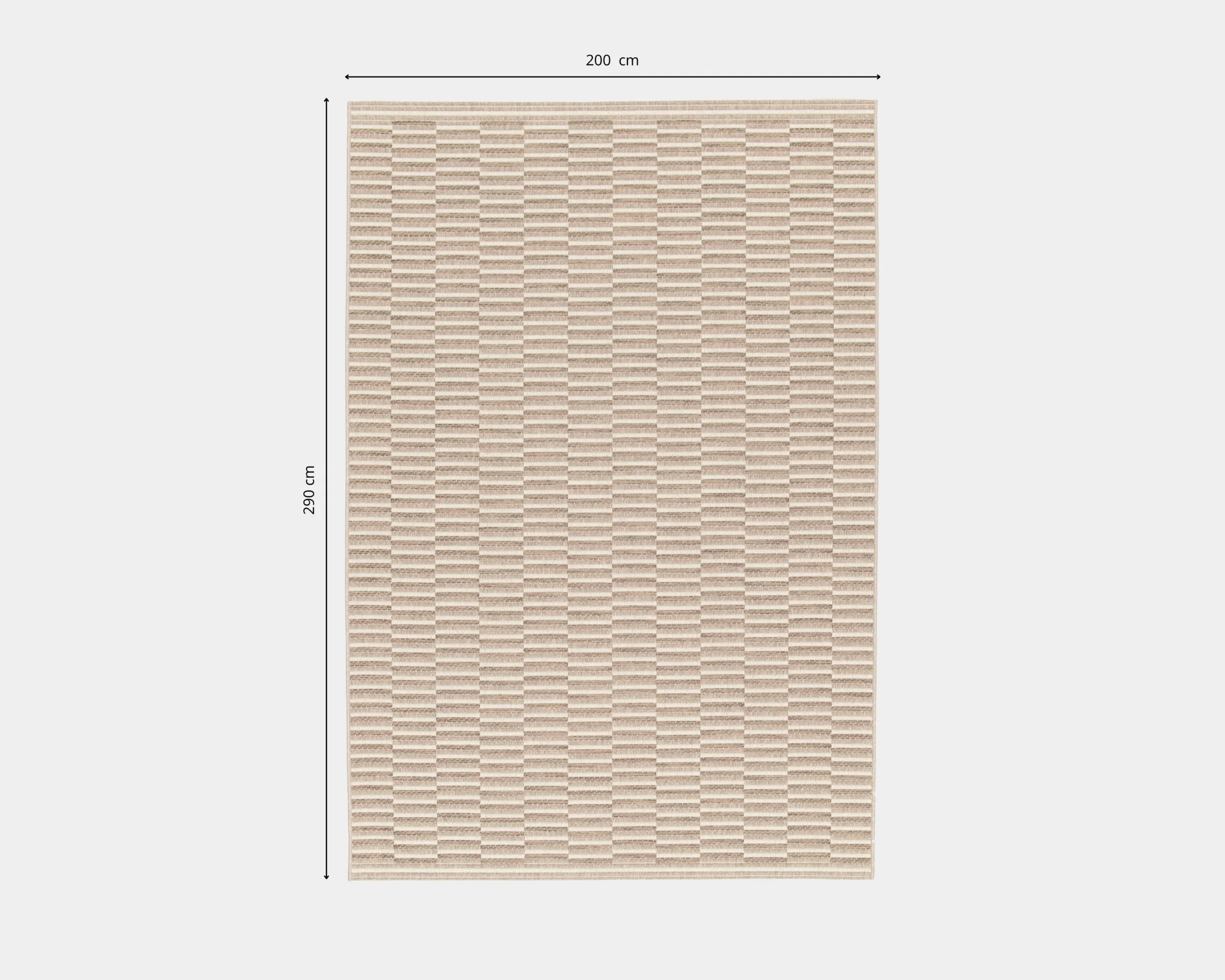 Alfombra Bado Beige 200 x 290 cm, ideal para complementar y dar un toque de elegancia a espacios interiores y exteriores. Confeccionada en hilos de polipropileno de alta resistencia, es duradera, fácil de limpiar y su tono beige claro aporta luminosidad y versatilidad a cualquier ambiente.