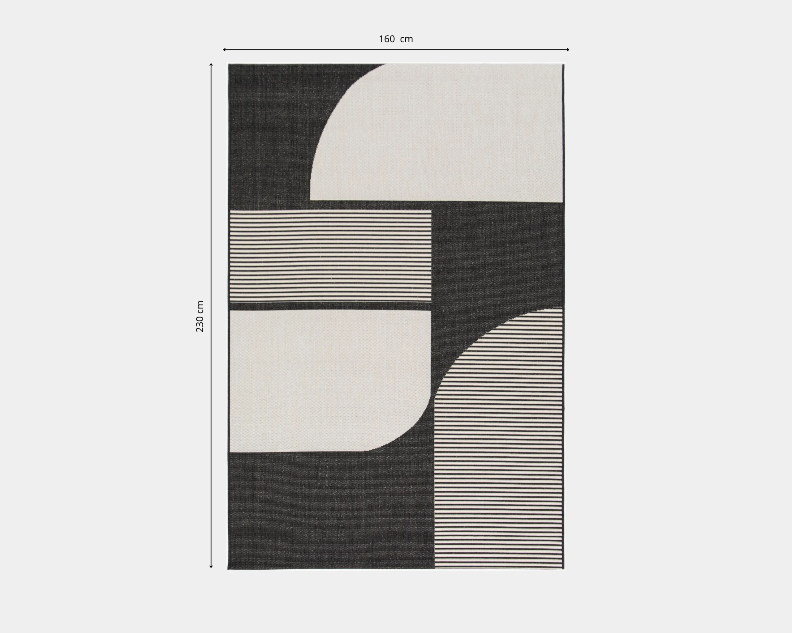 Alfombra Geo Cream & Black 160 x 230 cm, diseñada para aportar carácter y sofisticación a interiores y exteriores, confeccionada en hilos de polipropileno de alta calidad que ofrecen resistencia, fácil mantenimiento y un diseño contemporáneo que realza cualquier ambiente. Este producto no admite devoluciones.