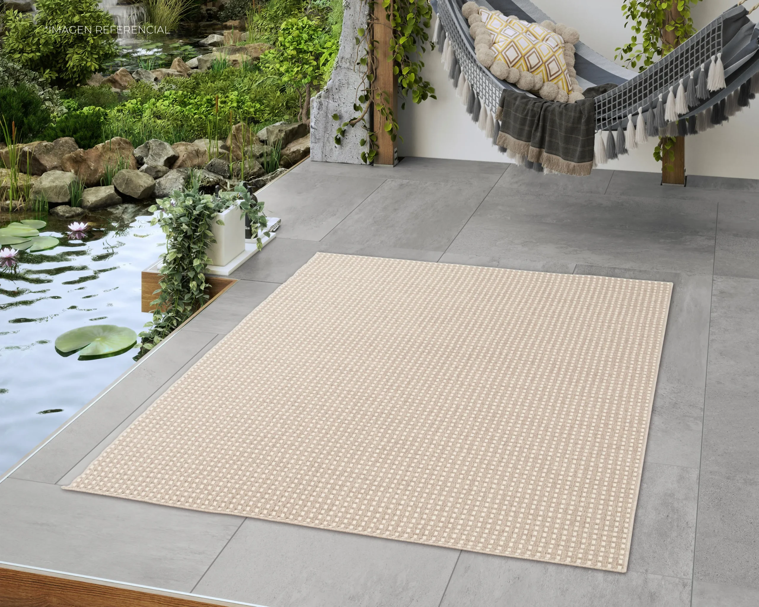 Alfombra Geo Cream & Black 160 x 230 cm, diseñada para aportar carácter y sofisticación a interiores y exteriores, confeccionada en hilos de polipropileno de alta calidad que ofrecen resistencia, fácil mantenimiento y un diseño contemporáneo que realza cualquier ambiente. Este producto no admite devoluciones.