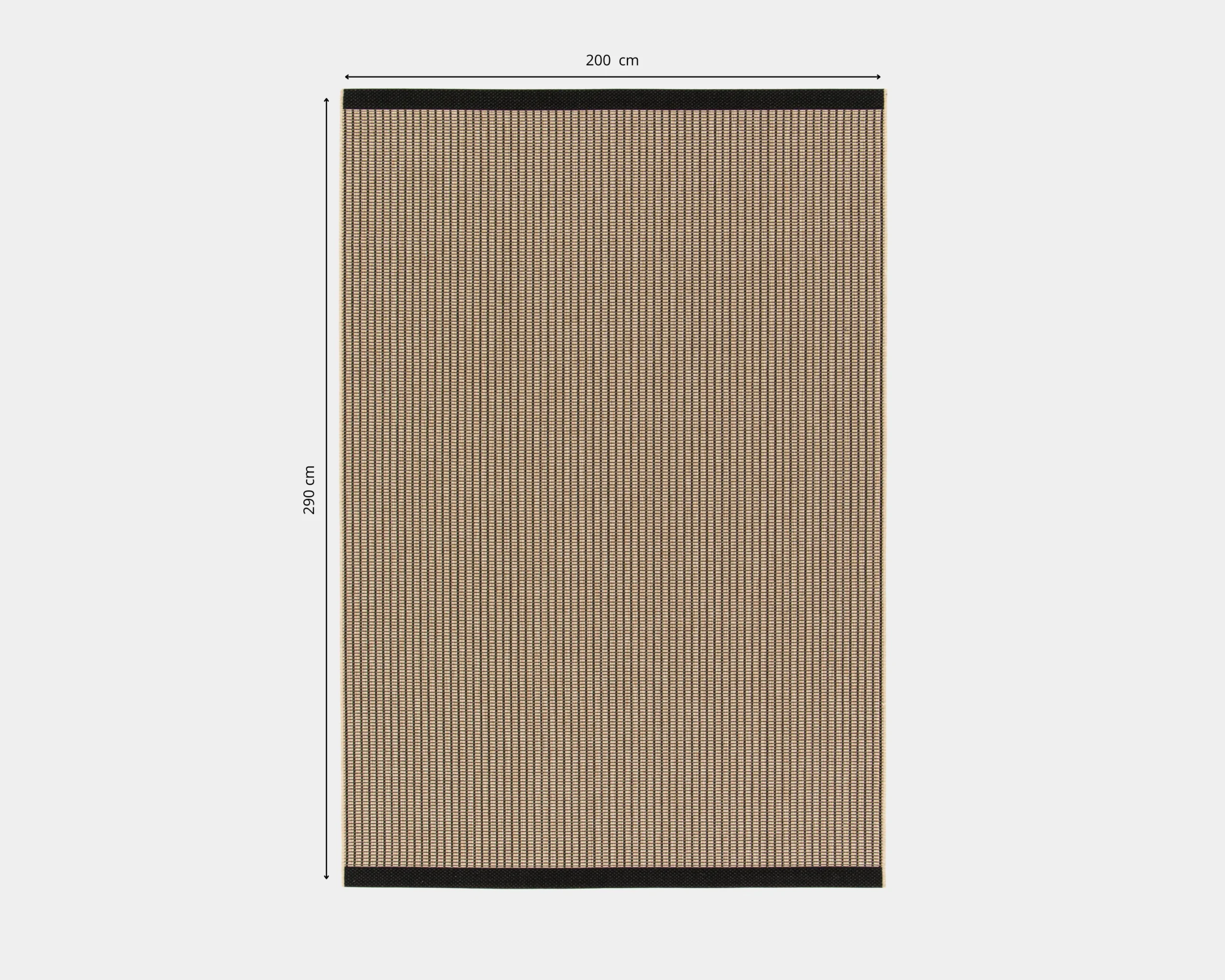 Alfombra Tapa Sand & Black 200 x 290 cm, ideal para aportar carácter y estilo a espacios interiores y exteriores. Su combinación de tonos arena y negro crea un contraste elegante y contemporáneo, perfecto para ambientes modernos. Fabricada con materiales resistentes y de fácil mantenimiento, es una pieza versátil que une diseño, funcionalidad y durabilidad en superficies amplias.