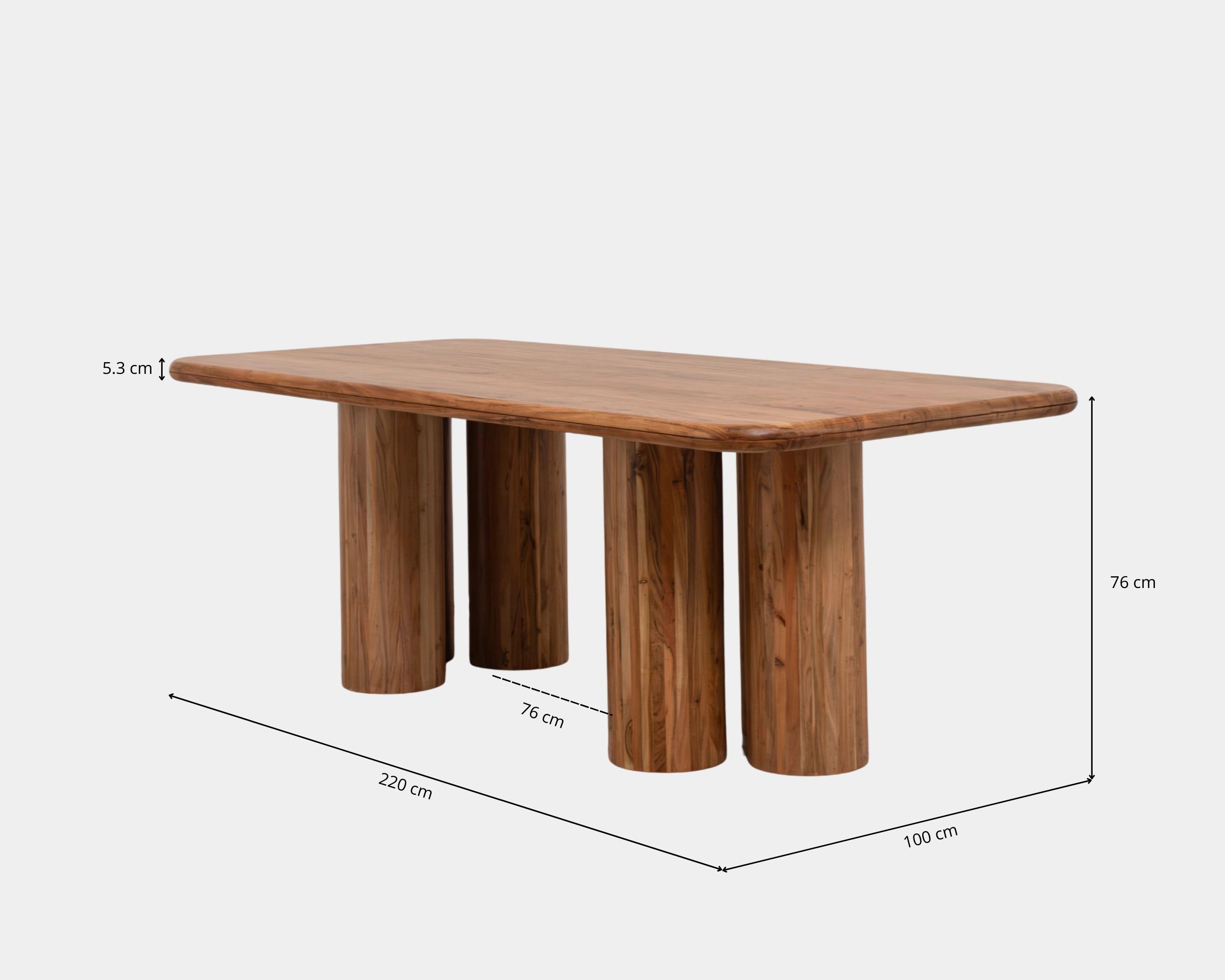 La Mesa de Comedor en acabado Walnut Honey es una pieza protagonista que aporta elegancia y calidez a comedores amplios y espacios sociales. Su formato rectangular y diseño equilibrado ofrecen una presencia sofisticada, ideal para compartir en reuniones y ocasiones especiales. Fabricada en madera de acacia estabilizada frente a la humedad, apta para interiores, garantiza alta resistencia, estabilidad y durabilidad para el uso diario. Su base con apoyos cilíndricos en las esquinas brinda mayor libertad de movimiento para las piernas, mejorando la comodidad sin comprometer el diseño. Con medidas de 220 × 100 × 76 cm, tiene capacidad para 8 personas, convirtiéndose en el centro natural del comedor. Su tono Walnut Honey, cálido y natural, realza la veta de la madera y eleva la estética del espacio con un estilo atemporal y refinado.