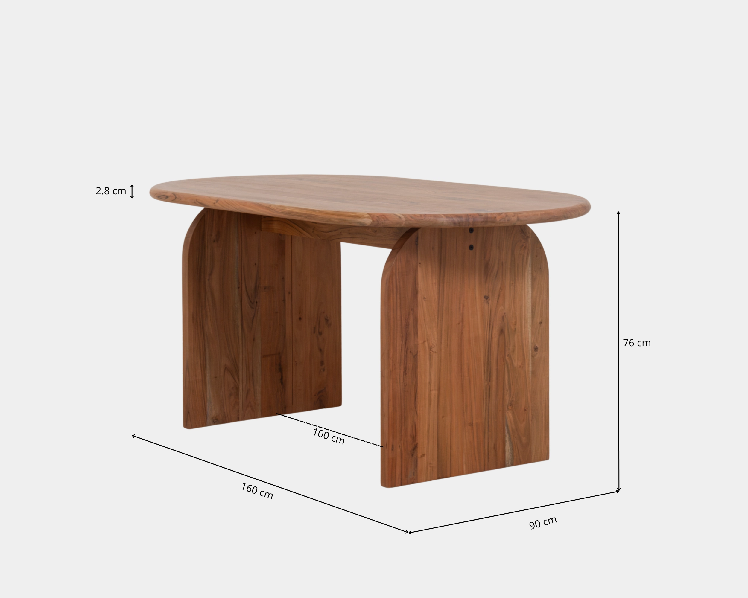 La Mesa de Comedor SICA en madera Natural 160cm largo x 90cm ancho x 76cm altura destaca por su diseño orgánico con bordes curvos que suavizan el espacio y facilitan la circulación, ideal para comedores amplios y áreas sociales. Fabricada en sólida madera de acacia para uso interior, ofrece gran resistencia y durabilidad para el uso diario, con una capacidad cómoda para hasta 8 personas. Su estética elegante y cálida la convierte en el punto focal perfecto para reuniones, combinando funcionalidad, diseño y sofisticación en una sola pieza.