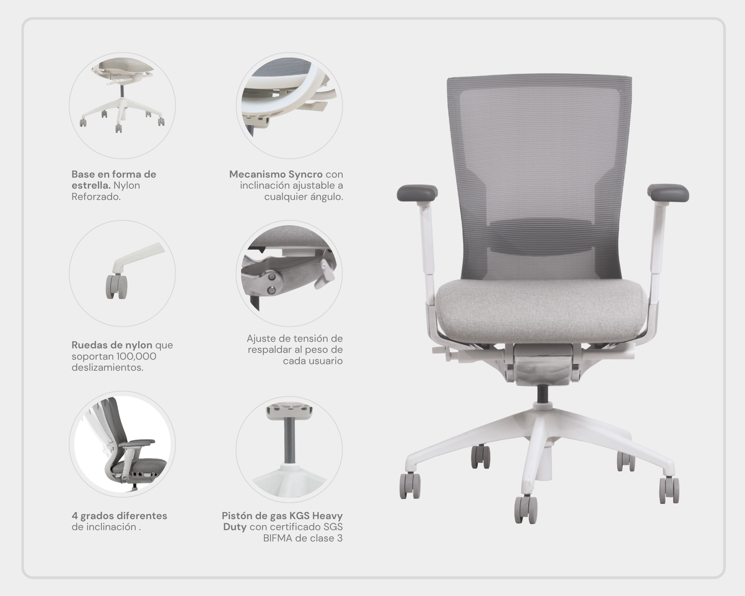 Esta silla cuenta con certificación BIFMA, GREENGUARD GOLD y de ergonomía.