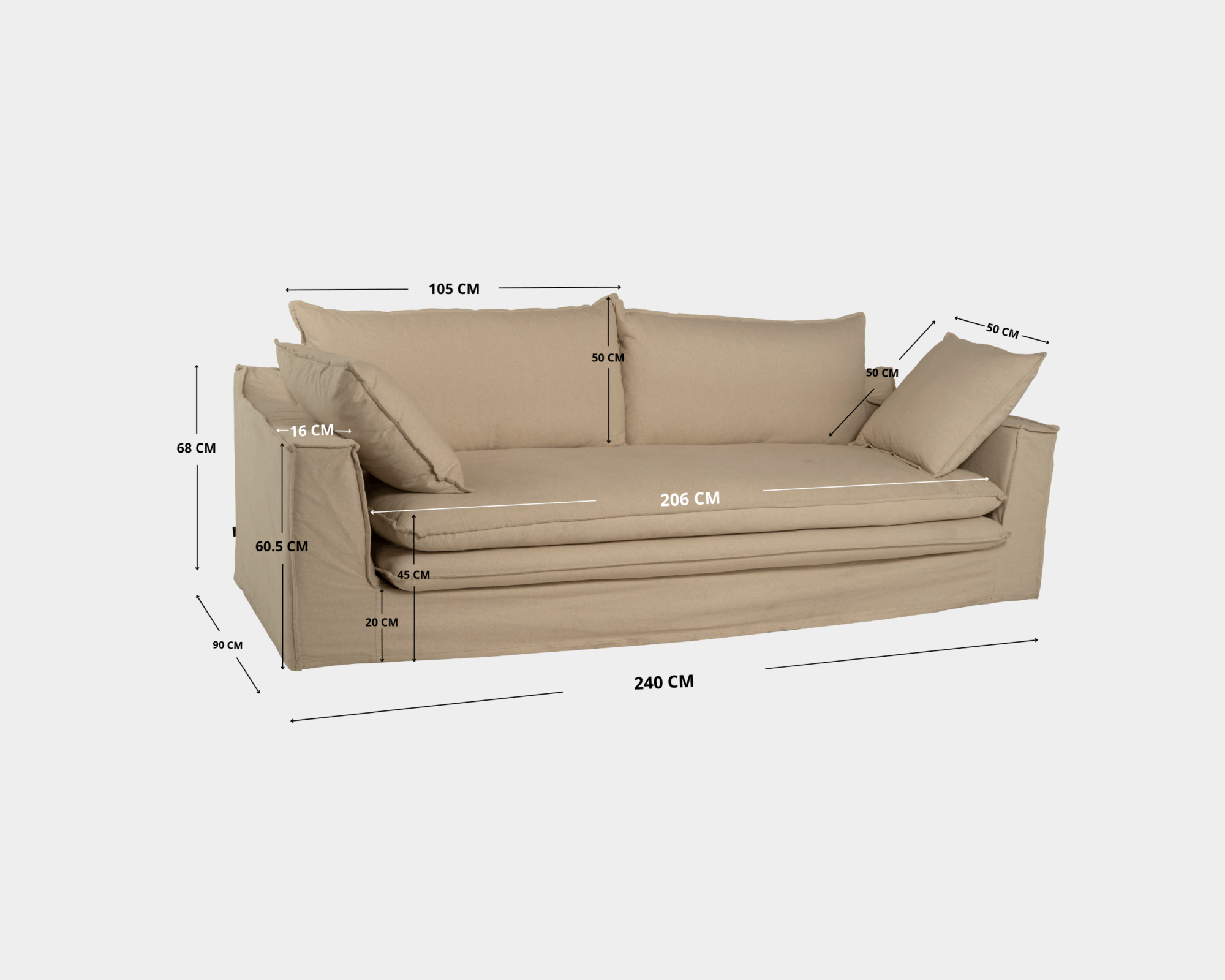 Sofá De Tela Ottoman Beige