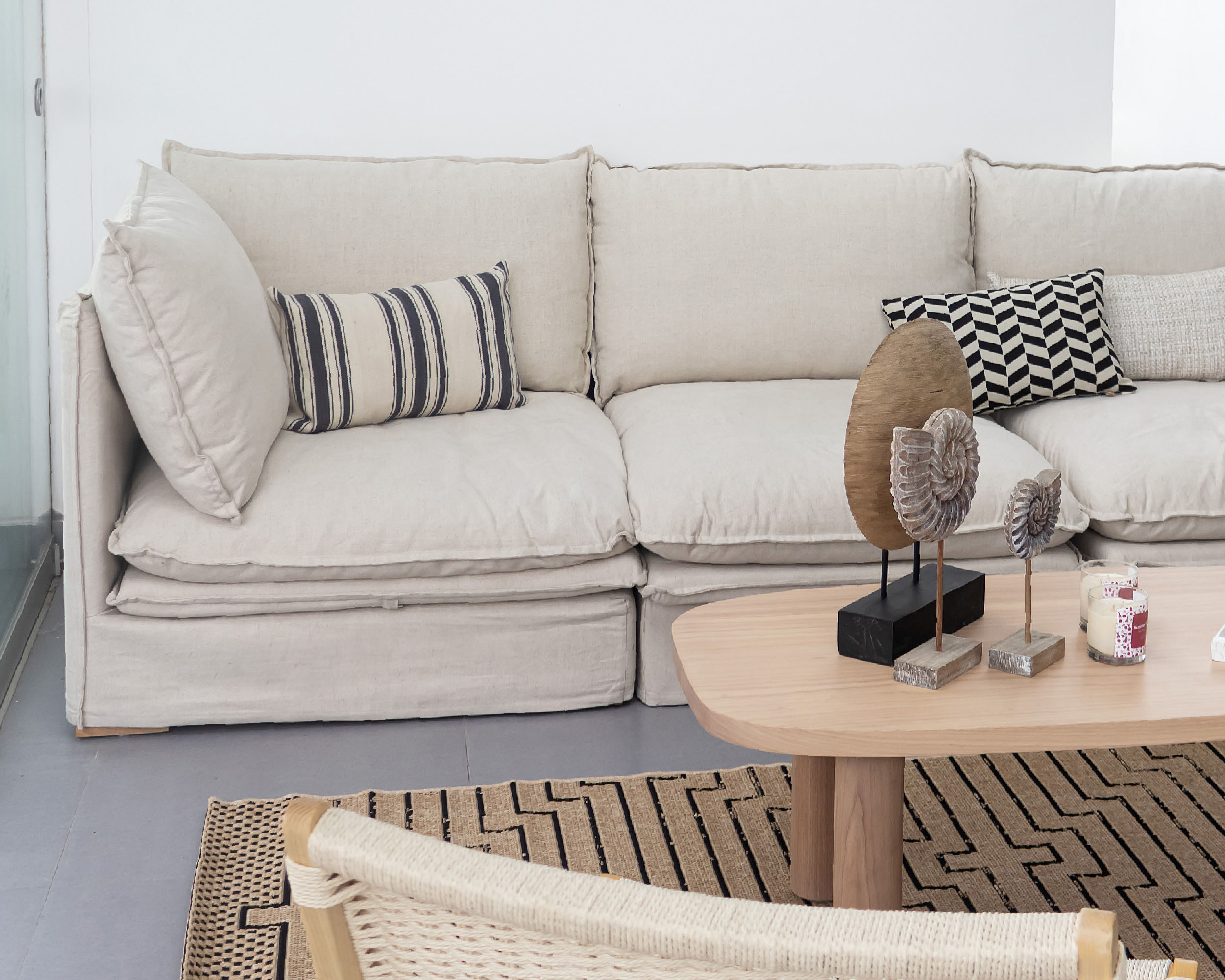 Sofá De Tela Esquinero Beige